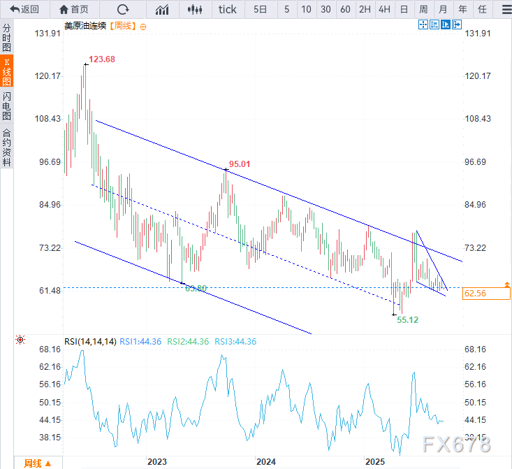 盘整格局通常被视为中性形态,直至价格朝任一方向实现决定性突破。在确认有效突破之前,延续三年的广泛下降通道结构仍是判断原油短期与长期方向的关键框架。